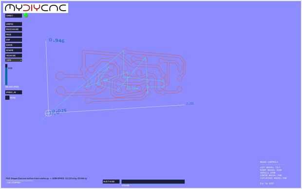 Ahora su casi allí! Establecer la cabeza de la máquina a su posición inicial con las flechas del teclado, una vez más donde es totalmente hasta usted y qué usted desea. Debe usar la pantalla de la modelo en 3D del proyecto en FabCAM (o la aplicación de CNC) para ayudarle a colocar su posición.