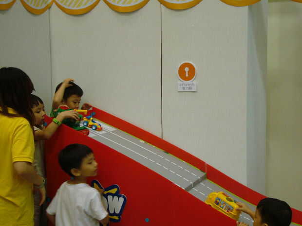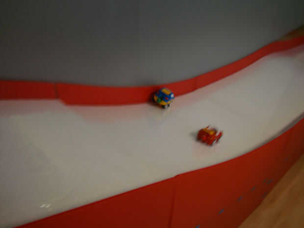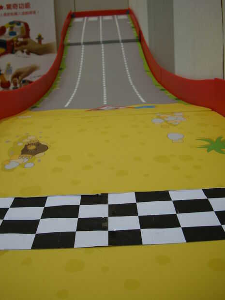 Foto del producto final. Todo, incluyendo temporizadores fue construido desde cero. Utilizando una pista de carreras de coche de ranura pude construir un simulador PLC conducido. Con un tirón de un interruptor, arrastre raza del punto al B o completa