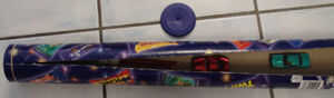 Embalaje para arriba es simple, la bandera se enrolla sobre los lápices como un pergamino y los coches van en el tubo.