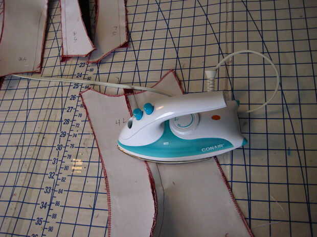 Luego presiona las costuras y los cosió sobre como en la maqueta.