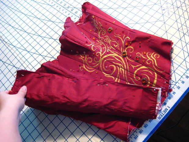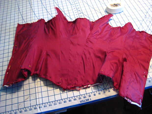 Cubrió a la guarnición que la capa exterior con los lados equivocados. Luego sutura lentamente hacia abajo en el centro de cada costura en el lado derecho. Esto se denomina "costura en la zanja". Mantiene el revestimiento con su capa externa y evita la formación de arrugas.