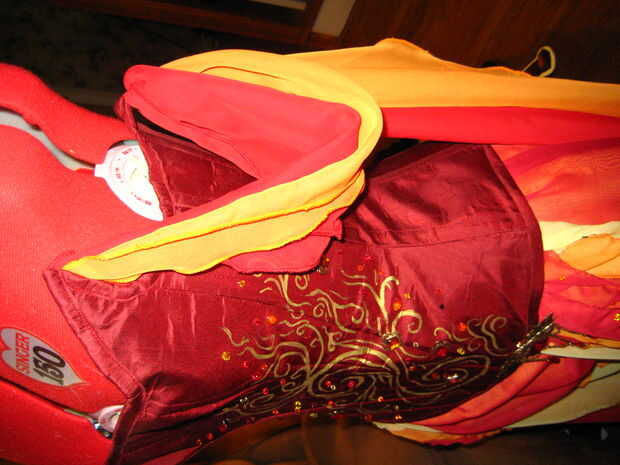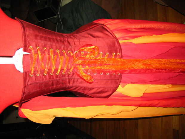 les en el corsé de un lado. El dobladillo enrollado hace la onda de tela muy bien.