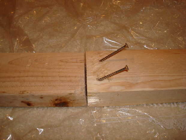 Cada esquina junto con dos tornillos de madera de 2.5 pulgadas y cada costura del tornillo también con dos tornillos de madera de 2,5 pulgadas.