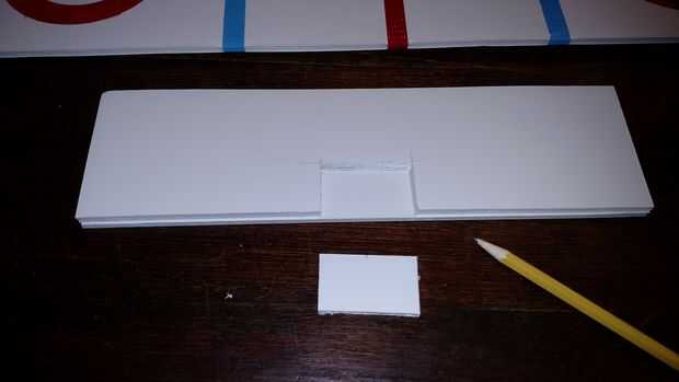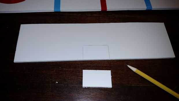 También necesita considerar el tamaño del disco con que usted jugará. Por ejemplo, planeo hacer un duende malicioso (una bola de cinta de conducto) que está entre 20mm y 25mm de diámetro, así que mi objetivo de apertura será de 50mm de ancho y 30mm de alto. Después del montaje final la altura del objetivo de apertura será aproximadamente 25mm basado en el espesor de la base de la espuma.