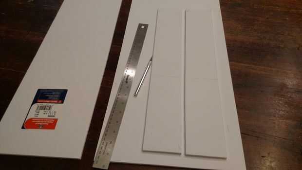 Encontrar el desecho de la Junta de extremo pequeño (debe ser de 300 x 160 mm) y cortar por la mitad a lo largo de la longitud para crear dos tiras de 80mm de espuma de.