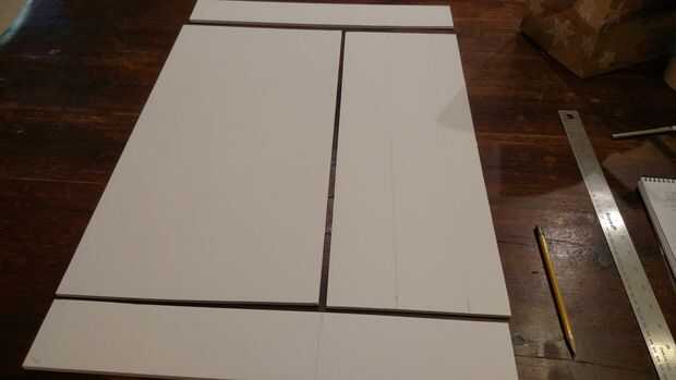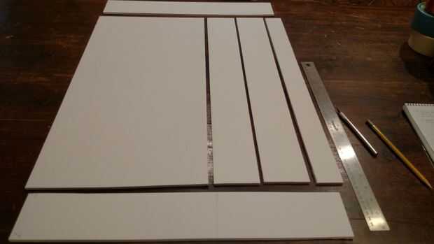 Usando el trozo de tablero de lado (600 mm x 200 mm), medir y cortar dos tiras de 80mm de la base de la espuma.