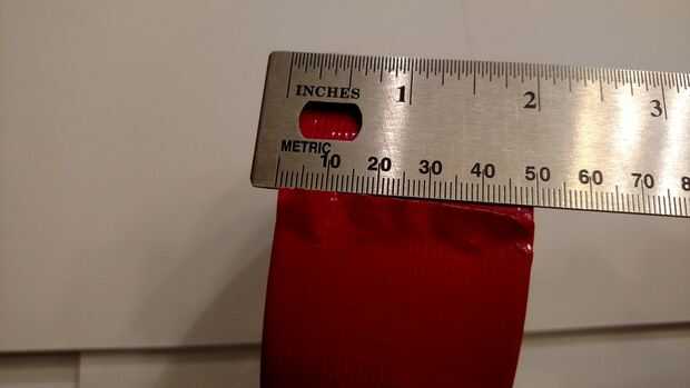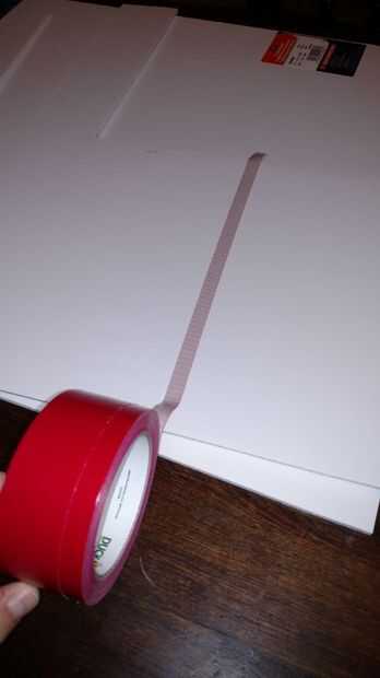 Rasgue una franja de 10mm de ancho de cinta roja que se extiende un poco más allá de la anchura de la pista (300mm de ancho de pista) y colocarlo en la pista en el centro. Simplemente envuélvalo con cualquier cinta sobrante en el fondo de la pista.