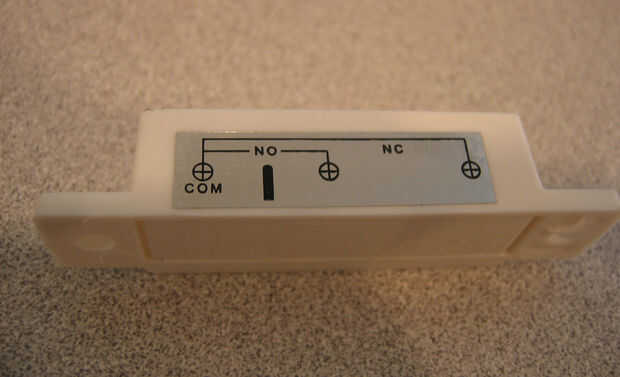 Si el conmutador tiene tres terminales Asegúrese de elegir el uno que indica normalmente cerrado. En el interruptor de contacto que usa había un diagrama en el otro lado que demostró que terminal era que.