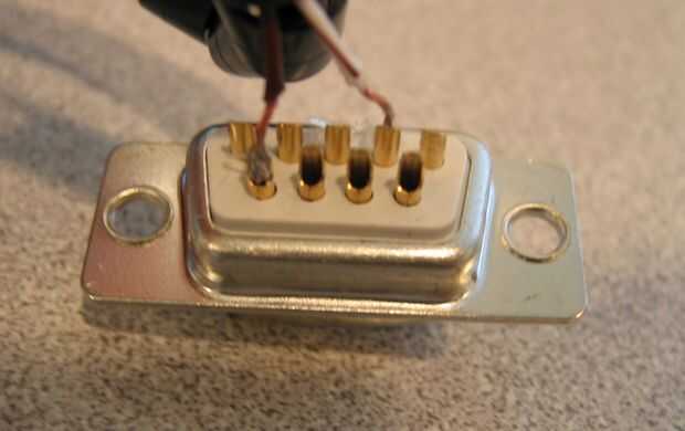 Ahora conectar los cables de calibre más pequeño a los grandes cables y soldarlos al conector del puerto serie. Usted tendrá que soldar los cables a los pines 4 y 6. Puesto que sólo estamos completando un circuito, no importa cual cable va a qué pin sólo asegúrese de llegar 4 y 6. El conector de que llegar será marcado con los números y también se pueden ver que pines necesita adjuntar a continuación.