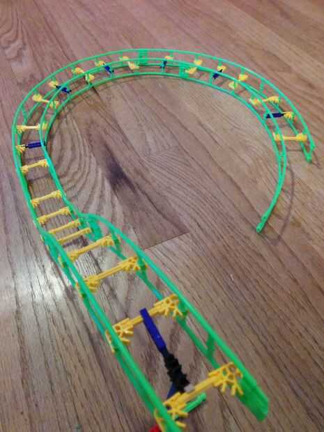 3,5 ft vertical montaña rusa creada a partir de K'Nex. El tiempo de construcción fue alrededor de 3 horas. Esta montaña rusa es un diseño totalmente original.