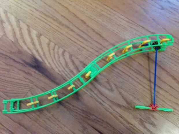 3,5 ft vertical montaña rusa creada a partir de K'Nex. El tiempo de construcción fue alrededor de 3 horas. Esta montaña rusa es un diseño totalmente original.