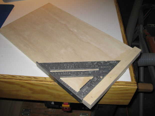 Ahora la modificación. Queremos que fije un tope a la parte inferior de esta placa y queremos que sea cuadrada. Resulta que mi plaza de estructura... no era tan cuadrada, así que falló en su único trabajo en la vida. Utilicé un cuadrado de la velocidad, que realmente hizo su trabajo, pero puede utilizar una escuadra de combinación o una plaza de estructura que no apestan.