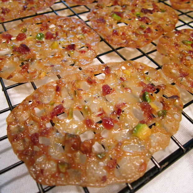 Hornear durante 3-4 minutos o hasta que esté burbujeante y dorado marrón. Enfriar en la bandeja para hornear hasta que cuaje y luego transferir a una rejilla para enfriar.