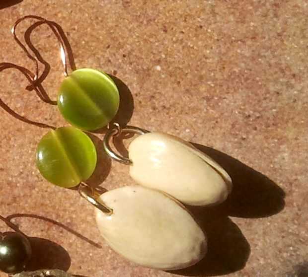 FreshGal Eco-Earrings.Rincón del artista... El fenómeno de pistachoSólo quería saber ¿dónde van todas las cáscaras de pistacho? Escucho que hay una isla del tamaño de Texas en alguna parte en el Pacífico, oh espera, creo que uno está hecho de nada si