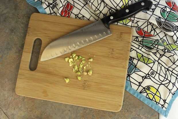 Cortar algunos pistachos tostados para espolvorear encima de las natillas.