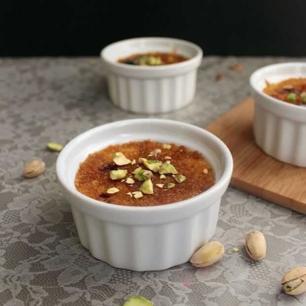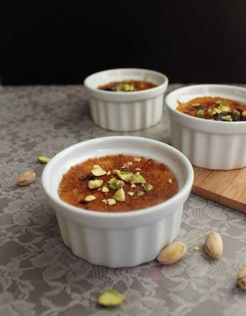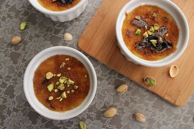 Espolvorear un poco de pistacho picado en cada acabado Creme brulee y sirva para arriba inmediatamente. ¡ Disfrute!