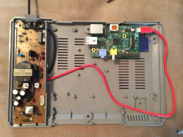 En caso de no era conscientes, que frambuesa Pi no tiene interruptores encendido-apagado, enciende tan pronto como reciban energía. Debido a esto, podemos utilizar el interruptor de alimentación PS1 original como el interruptor para el Pi. Lo primero que vas a querer hacer es agujeros por encima y por debajo de donde se encuentra la Junta original para que podamos conseguir el cable USB desde la parte posterior, así como el cable micro del USB desde el lado. También apareció una de las dos clavijas de metal desde el puerto original de AC hacia fuera, luego rosca el cable USB con alimentación a través de él, tomó un poco de la perforación para hacer el agujero lo suficientemente grande. Vas a querer enchufe el "Power USB" (uno negro en mi primer cuadro) en un ladrillo de la energía USB que generalmente se cobra el teléfono (siempre y cuando sea 5 voltios).