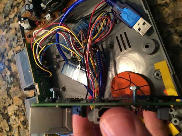 Vas a querer montar el Raspberry Pi para que el puerto HDMI sobresale del puerto de la entrada-salida Serial de la caja de PlayStation. Usted notará que hay un lugar para los tornillos que sujetan las dos piezas de la caja de junta que está pegando demasiado lejos hasta para poner el Pi. Deberás cortar con unos alicates o utilizar una dremel para depilar hacia abajo. Sólo tenga cuidado que usted no vuelva a colocar un tornillo en ese agujero cuando está poniendo el caso detrás juntos!