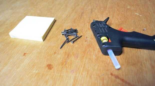 4. a continuación añadir un clavo en el extremo del cono y asegurar con pegamento caliente. Añadir acerca de 1\/3 pegamento caliente para dar el dardo algo de peso. Déjelo que se seque demasiado.