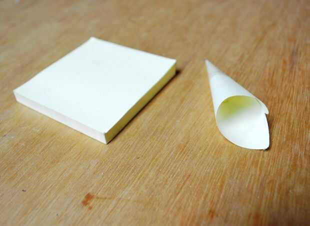 1. coge la nota post-it y gire en un cono. Sólo hacerlo a mano pero puedes usar algo en forma de cono para ayudar a que sean las mismas. Utilice el sticky bit para mantener juntos.