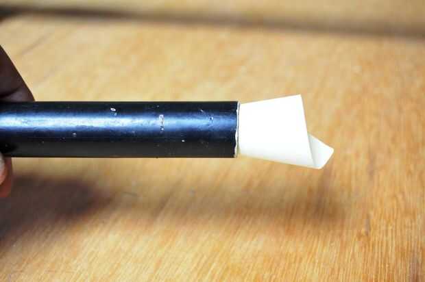 3. Coloque el cono en el extremo de la pistola de dardos y marque donde el papel toca el barril. Cortar el exceso y usted encontrará que el cono encaja perfectamente en el cañón.