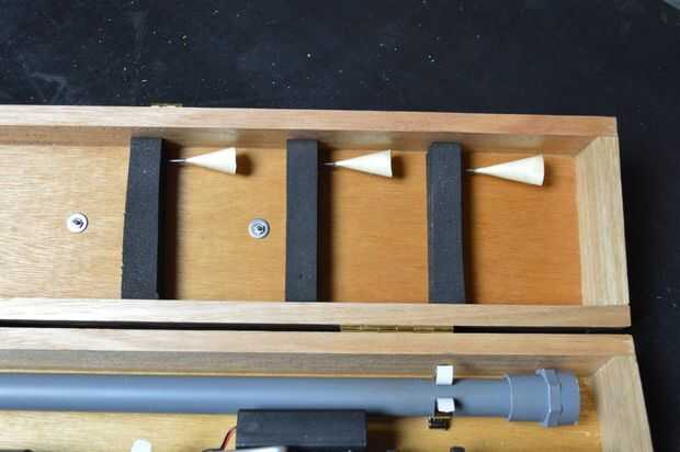 Subió con un bastante simple pero efectiva manera de almacenar el golpe dardos dentro del caso de uso poco firme de espuma y un poco de pegamento caliente