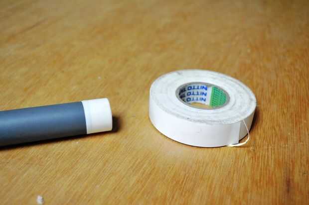 1. agarra el tornillo hembra de 15mm para acoplamiento de 20mm y el cañón. Añadir cinta aislante un poco hasta el final del cañón y empuje en el extremo del extremo de acoplamiento de 20mm.