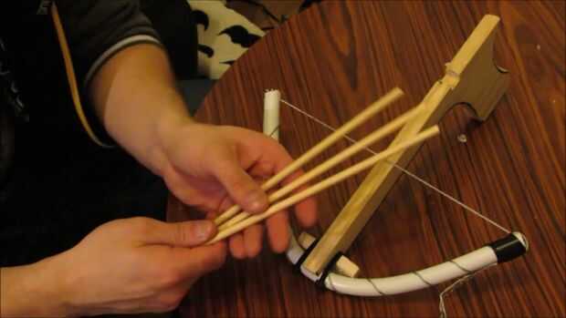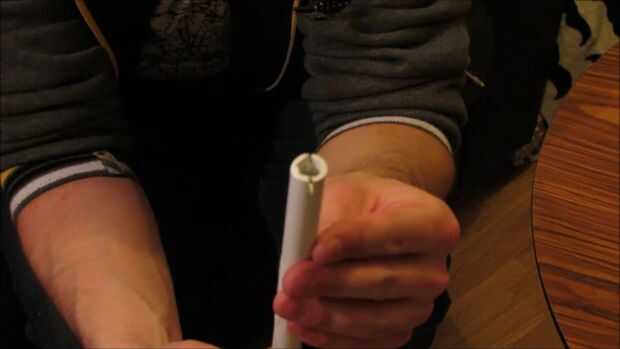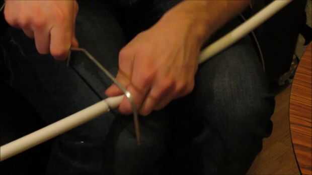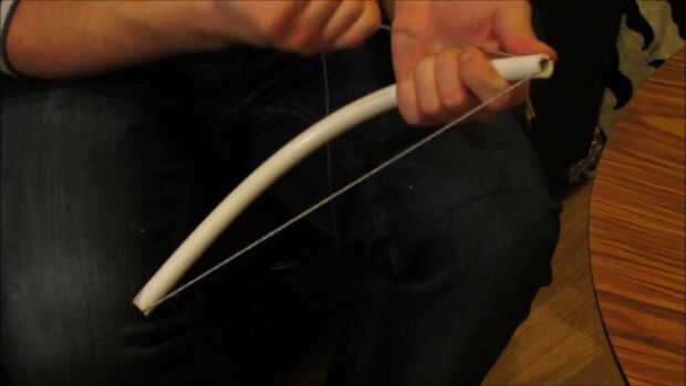 Cortar un tubo de PVC el tiempo suficiente y por lo tanto es proporcional a su arco. Luego cortar ambos extremos de un tubo como se muestra, para poder colocar el cable en los cortes. Atar ambos extremos de una cuerda en el nudo como se muestra. Entonces