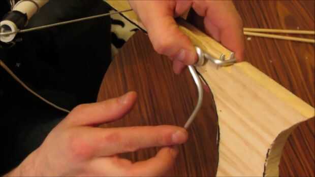 La potencia del arco puede partir madera y será inútil. para evitar que quiera como plástico o metal poco como lo hice, así que cuando usted gancho de cadena se sienta en su lugar y resbale fácilmente cuando el gatillo. Esto nos trae a un mecanismo de liberación o disparo. Usé una barra de aluminio y había doblado como se puede ver en las fotos. Debe admitir que no era fácil de averiguar la forma en que funciona, pero al final es más fácil entonces usted piensa.
