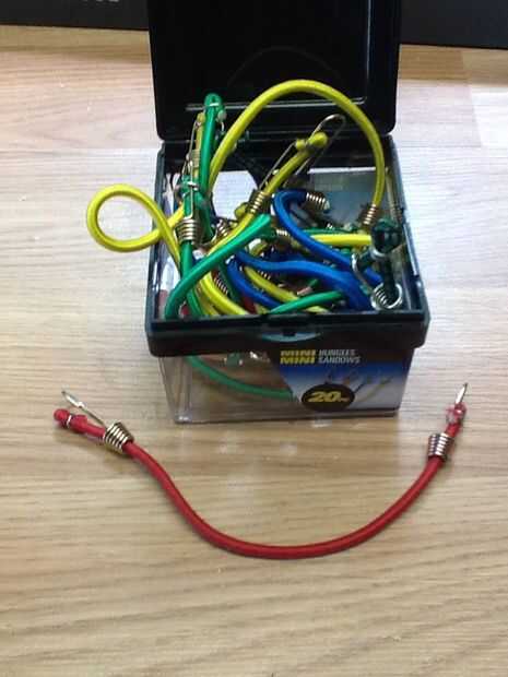 El arco está hecho de una tira gruesa de 1/4 de pulgada de álamo, 3/4 pulgada de ancho x 12 pulgadas de largo, sin embargo, deben trabajar la mayoría de las maderas duras. Después de cortar a la medida, fue empapado en agua toda la noche entonces fijada a una superficie redonda sólida, en mi caso, la mesa de mi sierra que como sobre un diámetro de 16 pulgadas, pero fácilmente podría utilizar cualquier superficie redonda. Seco durante la noche conservará la curva a la izquierda. Debe perforar tres agujeros de 1/8 de pulgada, uno en el centro y cerca de 1/4 de pulgada de cada extremo... La cadena es simplemente una mini cuerda del amortiguador auxiliar, aproximadamente 10 pulgadas de largo. He comprado una caja de 20 de mi tienda local auto por $5.
