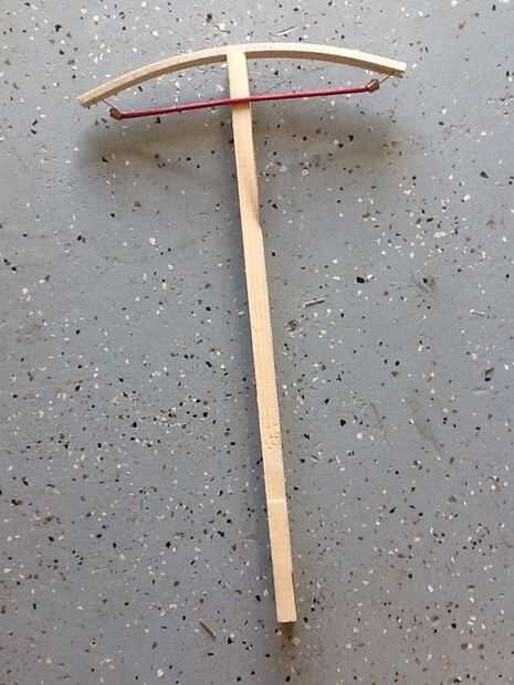 este es mi madera pistola ballestautiliza un bambú prod/arcopuede despedir a unos 30 piesentrará en un tablón de madera fácilmentees muy divertido para prácticas de tiro