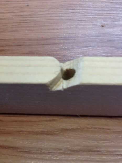 Hacer un corte en la línea de lápiz sobre tan profunda como ness grueso de la cuerda del amortiguador auxiliar. Hacer otro corte en un ángulo de 45 grados, creando una muesca para que la parte plana enfrenta al arco y el ángulo enfrenta a la parte posterior. Con un archivo y papel de lija alrededor de las esquinas frontales del plano corte por lo que se puede liberar el bungee más fácilmente. Perfore un agujero de 9/32 pulgadas en el centro de la muesca derecha a través de la madera. Empuje un trozo de espiga de 1/4 de pulgada aunque el agujero. Se trata del percutor. Estirar el amortiguador auxiliar por lo que coge en la muesca, presionando el pasador. Levante la espiga de la parte inferior así que lanza del bungee. Si funciona has hecho la parte más difícil pero para disparar cápsulas necesita construir un retén y gatillo.