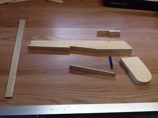 aquí está mi pistola ballesta, puede disparar hasta 15-20 pies, y es bastante fuerte. Espero que les guste! Lo siento pls, utiliza un poco su diseño del gatillo de su ballesta, podría no pensar en cualquier otro disparador. Como dije, me separe creac