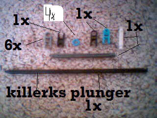 algunas modificaciones en el cañón de KVG básica. Agregar un dispositivo de gatillo más realista y un mango. Una d un poco de energía extra.Paso 1: Reunir piezas Esta es una lista. A medio camino a través de lo que me decidí a cambiar 1 de los clips