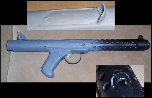 que utiliza aluminio grueso para las piezas de detalle extra. Cortar con el Dremel y arena a la forma. Utilice una lima para limpiar un poco. Utilizando la Dremel corta ranuras en el PVC el epoxi en. Lo mismo con el gatillo.