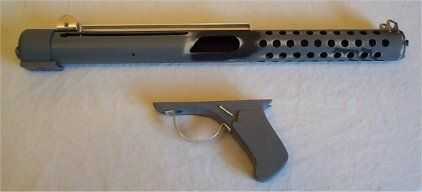 Instalar los delantero y trasero. Preparar su manija e instale el gatillo de seguridad y protección. Utilizar la Dremel para hacer ranuras en la cubierta principal para el punto de mira después de epoxy en. Poner algunas epoxi todo el camino alrededor del exterior, esto hace que parezca está soldado. Use remaches ni tornillos para fijar la mira trasera.