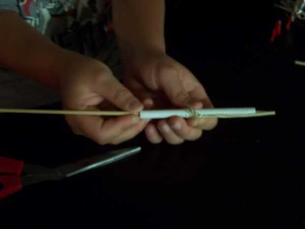 para construir una pistola miniatura. Se necesita: Bic pluma papel cinta alfiler con bola o cabeza plana de la pistola de pegamento caliente de back-end tijeras Nota: este mismo proceso puede ampliarse utilizando tubería de PVC de un tamaño más típic