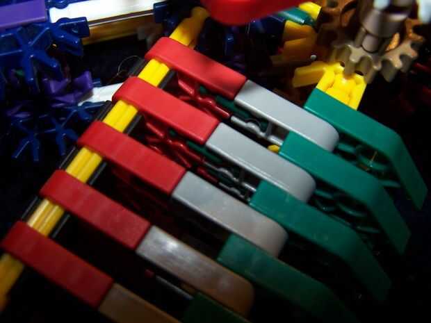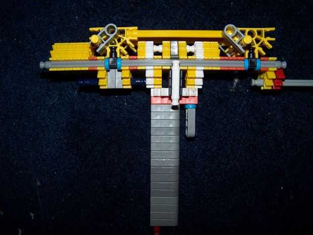 En este tutorial usted aprenderá cómo hacer una banda de goma semi automática pistola de K'NEX.Dependiendo de las bandas de goma usa, la pistola puede contener hasta 8 rondas de munición. Se dispara un tiro para cada tirón del disparador.En un anteri