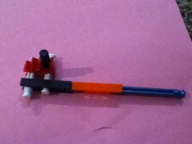 Aquí es mi primer arma de K'nex. Es muy fuerte, tiene una gama de cerca de 35 pies y es muy fácil de construir. La pistola dispara barras amarillas. Espero que soy bastante claro con las instrucciones. Es mi primer instructable.* Utiliza modificado g