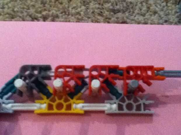 Aquí es mi primer arma de K'nex. Es muy fuerte, tiene una gama de cerca de 35 pies y es muy fácil de construir. La pistola dispara barras amarillas. Espero que soy bastante claro con las instrucciones. Es mi primer instructable.* Utiliza modificado g