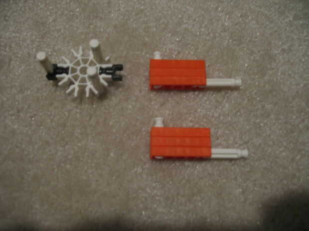 esto es una pistola de KVG simple. su acción de cerrojo o semi automático y tiene un mag que sostienen 8 barras azules que pueden disparar combate de 40 piesPaso 1: primero que estas partes esta es la pieza de barra gris izquierdaPaso 2: derecha esta