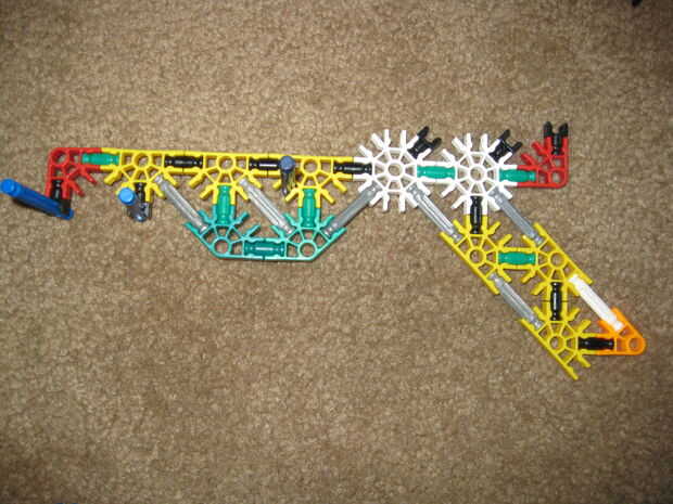 Hola, este es un concepto para una pistola de acción de palanca que al tirar la palanca no sólo carga la bala pero tira hacia atrás la ram no he recibido redondo a lo acabado y estoy a punto de demolerla para construir un francotirador. El mecanismo
