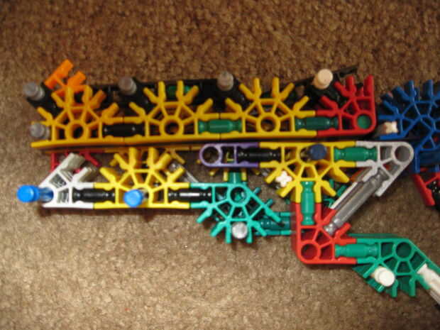 esto es una pistola de KVG simple. su acción de cerrojo o semi automático y tiene un mag que sostienen 8 barras azules que pueden disparar combate de 40 piesPaso 1: primero que estas partes esta es la pieza de barra gris izquierdaPaso 2: derecha esta