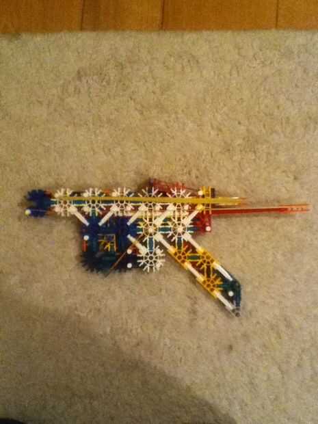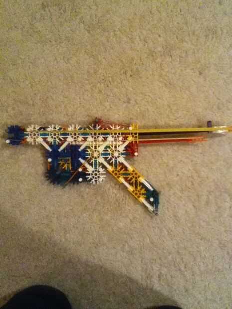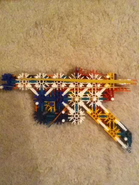 esto es una pistola de KVG simple. su acción de cerrojo o semi automático y tiene un mag que sostienen 8 barras azules que pueden disparar combate de 40 piesPaso 1: primero que estas partes esta es la pieza de barra gris izquierdaPaso 2: derecha esta