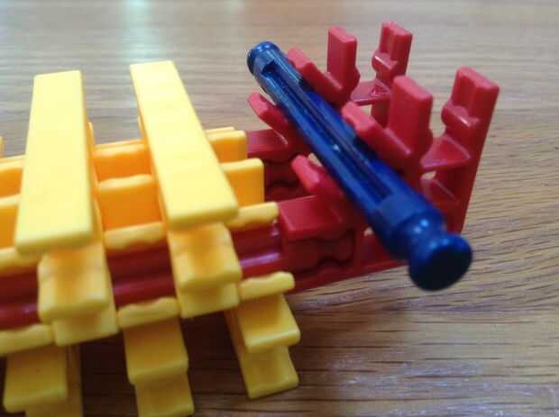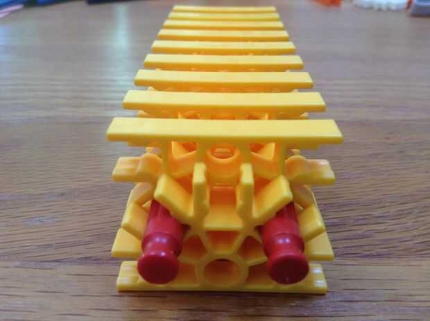 arma muy simplePaso 1: las piezas que necesitaPara construir este arma necesita 20 conectores rojo 4 conectores naranja 2 conectores amarillos 1 conector gris 6 conectores verde 7 Palos verdes 4 palos blancos 8 palos azul 3 palos amarillo 2 palos roj
