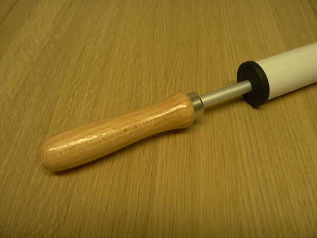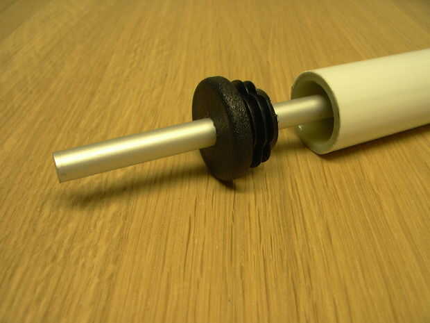 Coloque el émbolo dentro del tubo. Un poco de aceite el pistón (por ejemplo con aceite de colza) previamente.