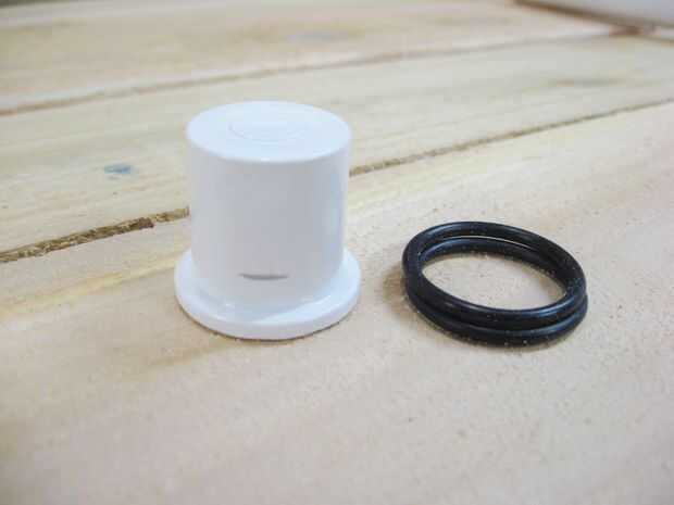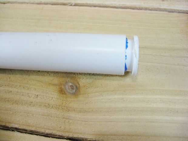 Pegar la clavija en un extremo de la tubería de 1" con cemento, hasta la línea. No desea que las juntas tóricas se enganche firmemente entre la parte acampanada del tapón y el tubo, por lo que es deseable una pequeña sala de meneo (1/32" extra o así está bien).