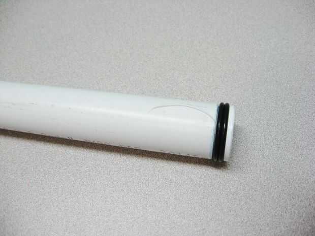 Coloque los anillos sobre la seda dental y verifique el ajuste de su sello casi completa en el extremo abierto del tubo. Apenas debe encajar con un poco de presión. Si está demasiado apretado, simplemente tirar unas pocas pulgadas de la seda dental en un momento hacia fuera por debajo de los o-rings y probar hasta conseguir el ajuste correcto en el cañón. Incluso no necesitas quitar los anillos o a menos que necesite añadir más hilo. Cuando el sello está funcionando correctamente, corte el hilo suelto y listo.