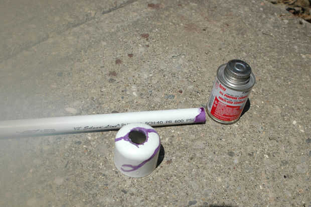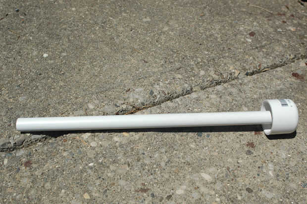 Tomar una tapa de tubo de 1 1/2 pulgada y perfore un agujero lo suficientemente grande como para el eje y deslice en el pegamento en el extremo. Esto servirá como un mango