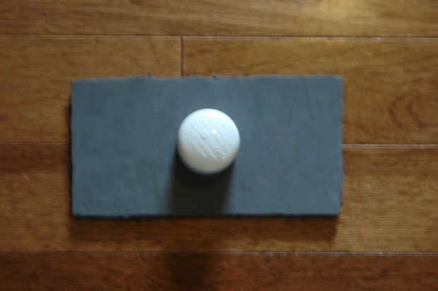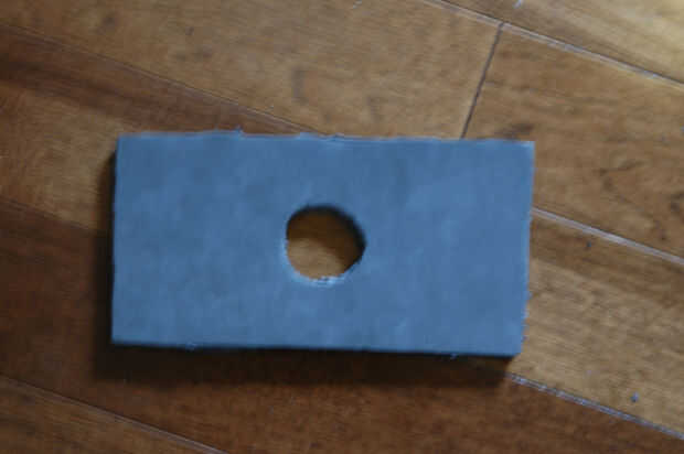 Tomar una de estas piezas y colocar una tapa de tubo de pvc 1 1/2 pulgada en el centro y cortar un agujero alrededor de él. se trata sobre el martillo